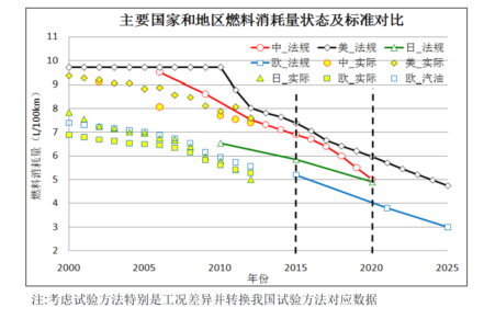 为应对全球性的资源短缺和气候变暖,巩固和提高汽车工业未来国际竞争力,欧美日等汽车工业发达国家都在采取积极措施,推动和促进汽车节能技术发展、提高汽车燃料经济性水平,相继完成新一轮针对2020年甚至更长远的各年度乘用车燃料消耗量标准法规制定,对乘用车燃料消耗量及对应的CO2排放提出更加严格的要求。