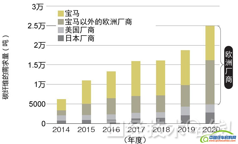 主要需求来自欧洲汽车厂商。今后,除了宝马以外,采用热固性CFRP的其他欧洲汽车厂商也将增加。数据是三菱丽阳的推测值。