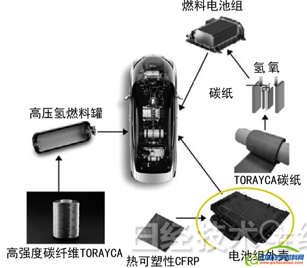 图3:丰田燃料电池车采用东丽的碳纤维