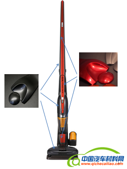 美学塑料是近几年流行起来的全新的外观解决方案,它将具有特殊效果的塑料粒子用常规的注塑或挤出等工艺,一次成型就可以实现产品靓丽的外观。该方案相比前几种方案,真正实现了低碳环保和一次成型。喷漆、电镀和水转印工艺冗长,涉及的有害化学品众多,而模内装饰虽然称之为“免喷涂”,但它其实是将喷涂等处理放到了制膜阶段,也存在工艺繁琐,环境污染的问题,相比之下,美学塑料才能真正地实现一次成型和低碳环保。该材料做得较好的国外厂家是Sabic和Cheil,国内技术比较领先的是上海锦湖日丽塑料有限公司,图5就是其美学塑料产品在LG吸尘器外壳上的应用。