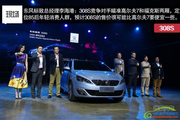 3月9日,东风标致在北京公布全新308S将于2015年4月15日正式上市。在现场东风标致总经理李海港表示:308S的竞争对手瞄准了高尔夫7和福克斯两厢,定位面向85后、90后年轻消费人群,并且强调在308S价格方面走亲民路线,最终售价将在上市现场公布,预计308S的售价很可能比高尔夫7要便宜一些。