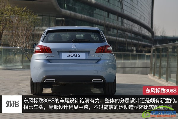 东风标致308S侧面造型简洁,腰线突显出运动化的身板。4255/1820/1480mm的车身尺寸比较主流,2620mm的轴距则不占优势。侧后方的造型还是比较耐看的,车尾设计饱满有力,整体的分层设计还是颇有新意的。尾灯也采用了LED灯源设计,狮爪造型的LED灯带将点亮后的尾灯表现的很生动也很有活力,C形尾灯轮廓也是家族设计。