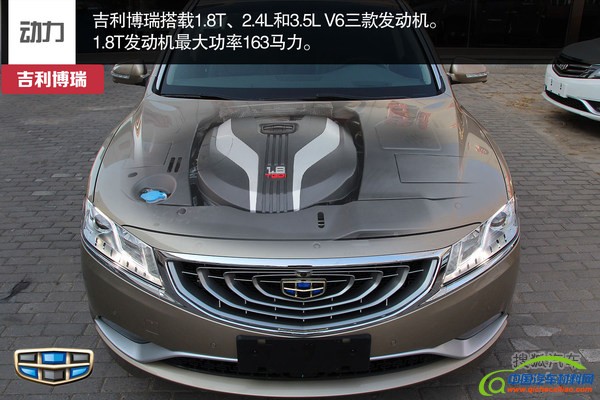 动力方面:据悉吉利博瑞将搭载1.8T、2.4L和3.5L V6三款发动机。1.8T发动机最大功率163马力;2.4L发动机最大功率162马力;3.5L V6发动机最大功率245马力,传动匹配的是6速手自一体变速箱。