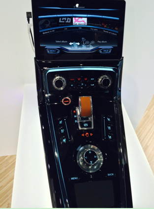 均胜电子展台上的一款全新的中控台概念产品也引起了记者的注意,这款主打“人机交互”的理念的概念产品,引入智能手机的操作模式,专注于可实现直观功能选择的多模块组合。它集成了手势识别、中文手写输入等多个不同的输入系统,可以通过触觉和听觉反馈及感官辅助来简化功能选择。这款中控台表面设计也十分独特,三锥成型的真玻璃和三维功能图标相得益彰,它们是均胜电子第四代黑色面板显示技术的研发成果之一。据悉,这款概念产品未来很有可能从高端豪华车进行定制化安装。
