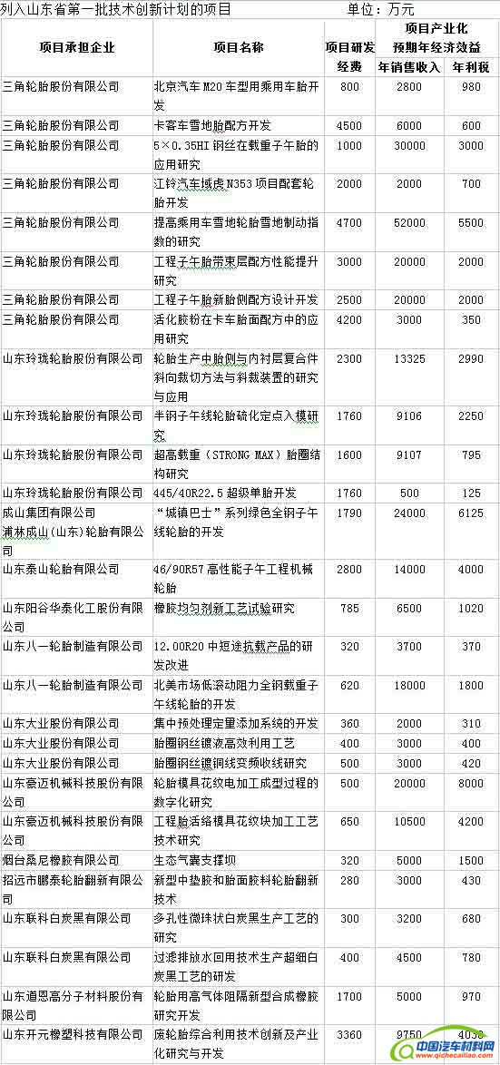 前不久,2015年山东省第一批技术创新计划项目已经下达,三角轮胎股份有限公司等13家橡胶行业企业的28个项目列入计划。