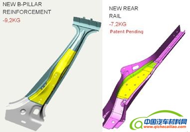 图6 补丁板热冲压技术的B柱和后纵梁