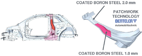 图7 2007款两门版Fiat 500补丁板热冲压技术的B柱