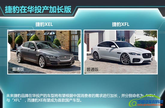 在豪华品牌中,轿车车型国产进行加长已成为“潜在”的规则,奔驰、宝马、奥迪均采用将车型加长的方式。而网通社此前从国家工商总局处获悉:捷豹路虎有限公司目前已注册多个全新商标,这其中就包括了XEL与XFL两个商标。这意味着XEL与XFL有望成为捷豹XE与捷豹XF的加长版车型,而两款新车也有望落户常熟工厂,进而与宝马3系长轴版、5系Li车型展开全面竞争。