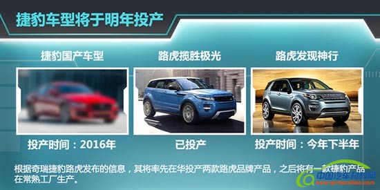 捷豹路虎于今年2月在华投产的首款车型-中国制造揽胜极光已正式上市,这是其推进国产化道路上重要的里程碑。根据规划,捷豹路虎计划在2016年前完成3款车型的投产,届时将有两款路虎品牌以及一款捷豹品牌车型在常熟工厂生产。在捷豹品牌方面,最新产品XE车型率先使用了全铝车身打造,而该技术已成为未来捷豹车型的发展趋势,国产车型也将使用。