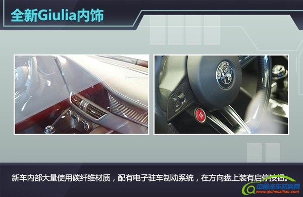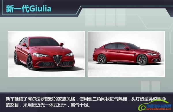 外 观上,新车延续了阿尔法罗密欧的家族风格,使用倒三角网状进气隔栅,头灯造型类似圆睁的怒目,采用远近光一体式设计,霸气十足。车身腰线流畅紧凑,采用符 合空气动力学的侧裙,鲜艳的红色制动盘和轮毂彰显了年轻与活力,制动性能优秀。车身采用50:50的车身比例,引擎罩、车顶和传动轴均采用碳纤维打造,配 备主动式尾翼(Active Aero Splitter),能主动控制高速行驶过程中的下压力,保证了高速行车的稳定性。