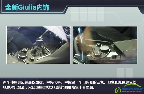 从曝光的内饰图来看,新车配有电子驻车制动系统,在方向盘上装有启停按钮,双区域空调控制系统的圆形按钮十分显眼。新车内部大量使用碳纤维材质,并使用真皮包裹仪表盘、中央扶手、中控台,车门内侧的白色、绿色和红色缝合线视觉对比强烈,充满了青春活力。