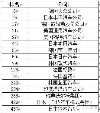 入选世界500强的国外车企排名
