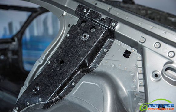 碳纤维增强复合材料有着绝佳的物理特性:比铝轻30%、比钢轻50%,强度却是钢的7至9倍,它的使用显著优化了全新系的车身刚性,对于那些需要承受较大压力的车身部件效果则尤为明显。以B柱为例,在碰撞中,经过增强型碳纤维复合材料加固的B柱不会因为冲击而变形,相反地,高强度钢和增强型碳纤维复合材料的相互作用会分散冲击力,提升了车辆的安全性能。