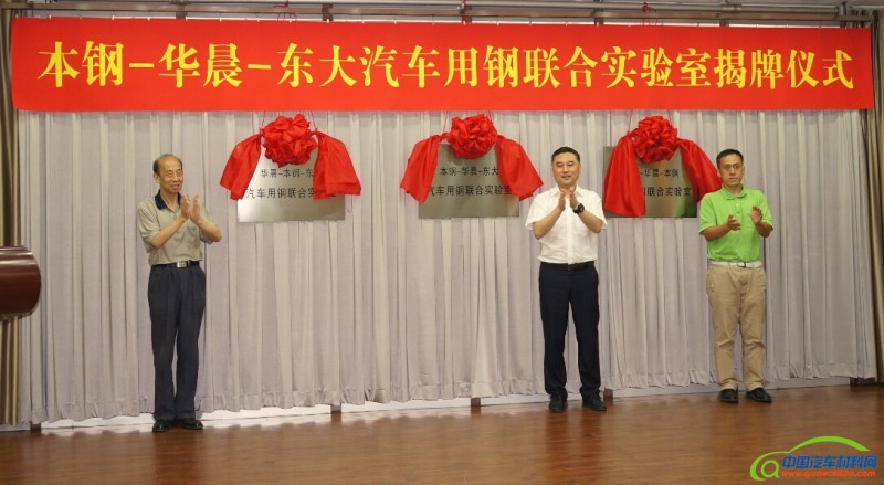 8月4日,本钢—华晨—东大汽车用钢联合实验室揭牌仪式在本钢宾馆举行。本钢集团副总经理张鹏,华晨汽车工程研究院副院长张宏,东北大学教授、中国工程院院士王国栋出席了揭牌仪式。本钢集团相关部门和主体厂矿负责人及技术人员参加了仪式。仪式由本钢集团副总工程师、产品研究院院长张贵玉主持。