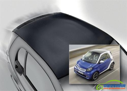 据了解,得益于新型材料的使用,新款奔驰smart fortwo的顶篷重量较普通顶篷减轻了30%左右,但依然保持较好的强度和抗弯刚度。
