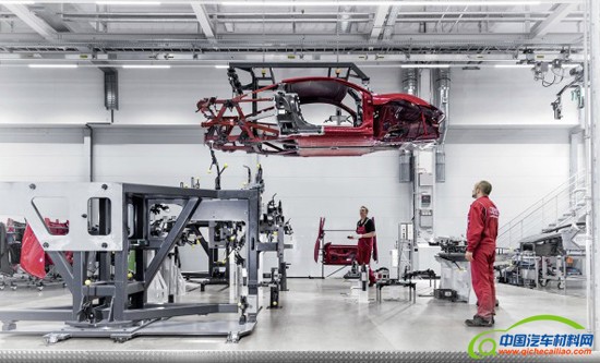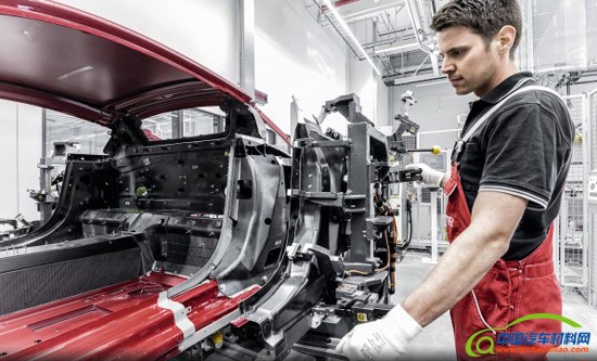 一旦车体框架通过完成区——区域1的最后一站——就会被卡车运往内卡苏尔姆(Neckarsulm)工厂的着漆车间,在那里,车体框架会经过阴极浸涂和烘箱的200摄氏度热处理,达到最终的强度。“碳纤维复合材料在完成这一步加工之前还不能被安装在车体框架上,因为它们不会随温度变化而膨胀,”约亨•瓦格解释说。“我们会在这些框架被运回来后再加装碳质部件。这些工作会在区域2中完成。”