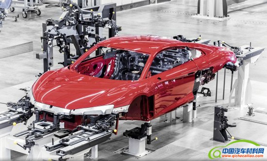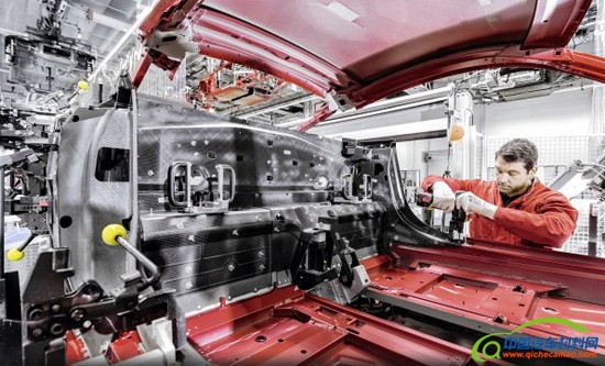 新R8跑车的轻量化设计进一步巩固了奥迪在这一领域的领先地位。该车的车体框架应用复合材料制造,它是由位于内卡苏尔姆(Neckarsulm)旁的博林格霍费(Böllinger Höfe)工厂生产的。