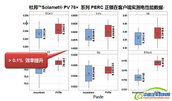 不仅如此,随着电池浆料印刷、扩散工艺的进一步提升,杜邦™ Solamet® PV76x系列还具有广阔的的优化提升空间。同时相对于其他新型电池结构来讲,PERC电池技术对于现有产线的改动较小,只需要增加相关钝化设备、激光设备等,背部抛光可以根据自身工艺需要进行配备。整体而言,对于现有产线的兼容性很高。