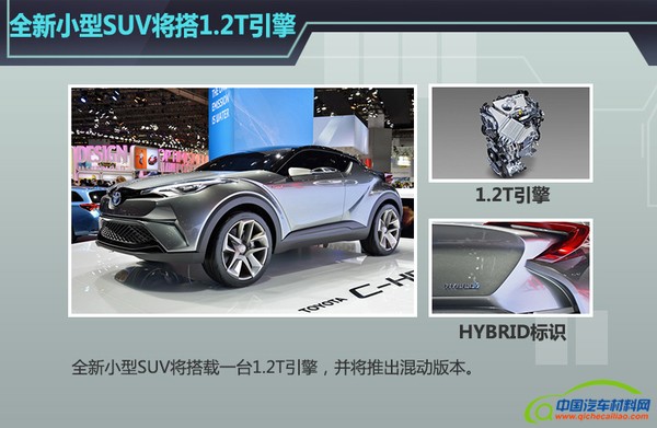 丰田的这款全新小型SUV在明年量产时,将有望搭载一台丰田的1.2T涡轮增压引擎,并会采用混合动力的动力单元。这款引擎将于明年引入国内生产,拥有85kW的最大功率和185N·m的峰值扭矩,与丰田现款1.6L自吸引擎相比,虽然在最大功率方面略有不足,但峰值扭矩多出了31N·m,使这款车拥有比较好的加速性能。而概念车上的Hybrid标识则预示着该车未来会推出混合动力版本。