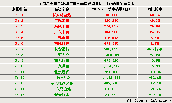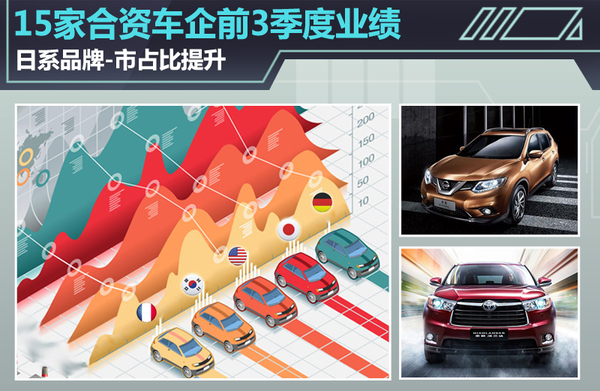 日系合资车企在整个中国汽车市场负增长的情况下,实现逆势增长,得益于近年来对自身产品结构调整,加快SUV、跨界车等新车的投放速度等举措。对于,德美韩法等合资车企的不佳业绩,分析人士指出:“通过提升经销商的信心和加速产品结构调整等有力的举措,今年销量和市场份额下滑的企业都将重回快速发展的轨道。”