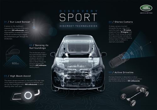 路虎发现运动版的仪表板上安装了一个太阳热负荷传感器,其每隔200毫秒便可监测一次光照强度,并自动调节空调系统,以抵消阳光照射在挡风玻璃上带来的热量。
