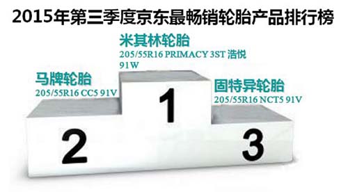 2015年第三季度,京东电商平台轮胎销量排行榜冠军是米其林205/55R16 PRIMACY 3ST 浩悦 91W,排名第二位的则是马牌205/55R16 CC5 91V,固特异轮胎205/55R16NCT591V排名第三。作为在轮胎市场纵横多年的国际大品牌,马牌、米其林、固特异等国际大牌始终以其优良的品质 赢得消费者的信赖。国产品牌如朝阳等,必须不断加强在研发创新方面的投入,提高产品质量,加大品牌推广力度,才能在电商领域与国际品牌一较高下。