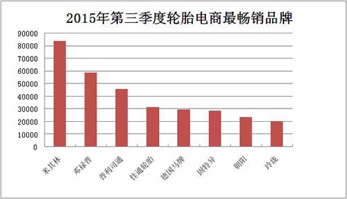 2015年第三季度,轮胎电商线上运营整体业绩相比上半年度成绩傲人。数据显示,第三季度,各轮胎品牌的线上销量整体运营业绩处于中上水平。
