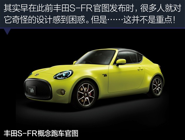 在2015东京车展期间,丰田为大家带来了未来入门级跑车的雏形——S-FR概念车。除了略显抢眼的骚气涂装,这款入门概念跑车的设计也颇具争议。或许对于一款全新产品而言,引起争议总比无人问津要好得多。更何况,这款S-FR概念跑车还拥有很多有趣的细节信息值得我们关注。