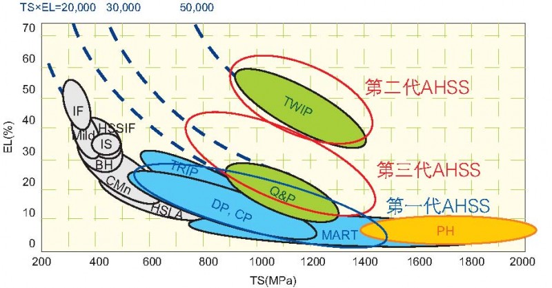 宝钢先进高强度钢的可供货品种情况:普冷最高强度达1700MPa,热镀锌最高强度达1180MPa,电镀锌最高强度达980MPa。
