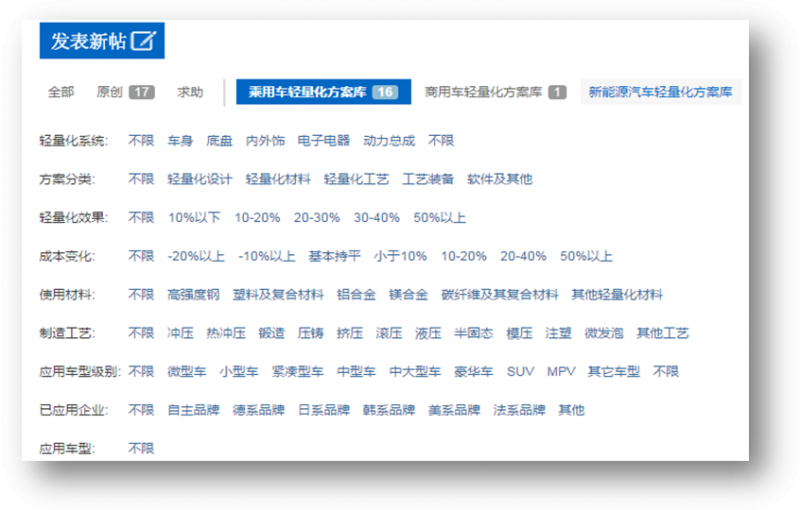 (4)需求企业也可以在上面发布自己的轻量化方案需求