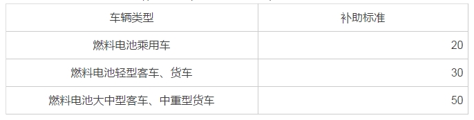 四、 燃料电池汽车推广应用补助标准(单位:万元/辆)