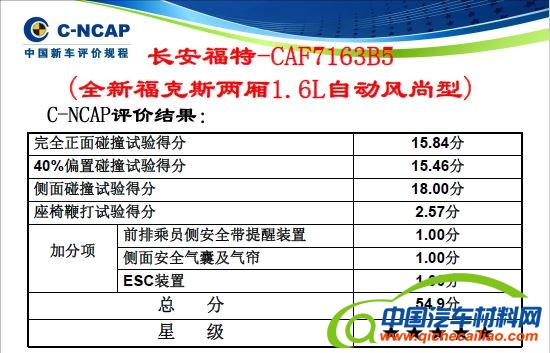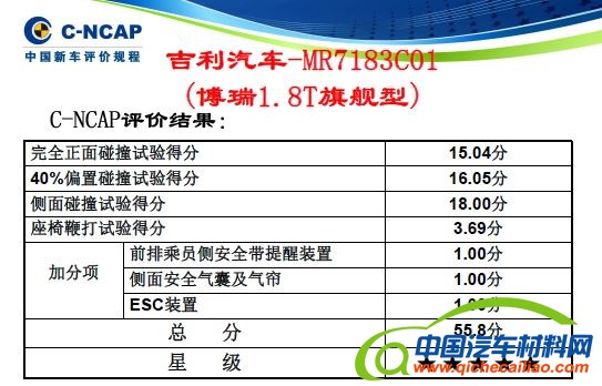 C-NCAP 2015年度第四批车型评价结果