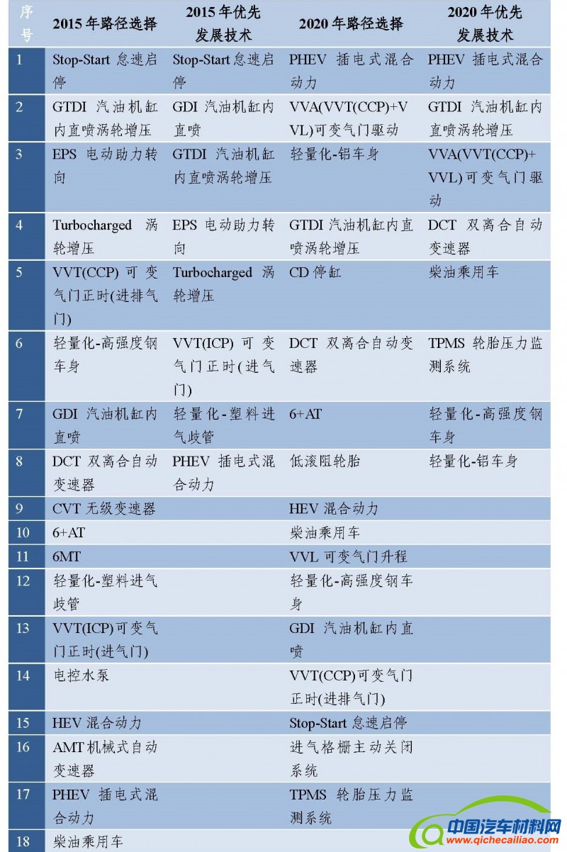 综合考虑,研究得出中国汽车节能技术路径如下: