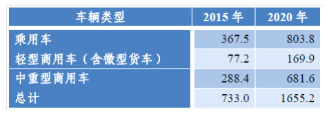 通过对各类车辆燃油节能目标值、行驶里程以及未来需求量预测值等计算得到2015年和2020年当年新车节油效果如下表。