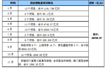 表1 1-11月发改委批复项目情况