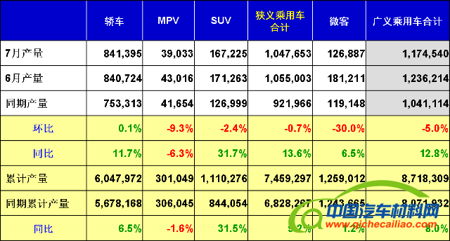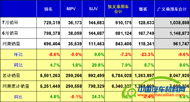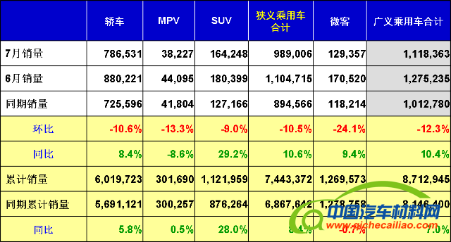 广义乘用车生产商销量排行榜(7月国内销售综合数)