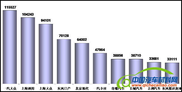 狭义乘用车生产商销量排行榜(7月国内销售综合数)