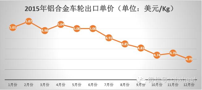 总体来说,2015年中国大陆铝合金车轮出口情况是量价齐跌,原因很简单,这与全球经济形势的恶化有关。