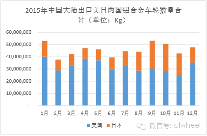 从历史数据来看,美国、日本两国一直是中国铝合金车轮出口最大也是最稳定的市场,两国2015年合计进口中国铝合金车轮54.83万吨,金额27.22亿美元,分别占中国该产品全年出口量和出口额的70%。