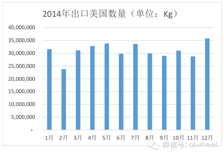 由于美、日两国从中国进口铝合金车轮的份额比重巨大,所以两国每月进口量的走势,基本上就代表了中国大陆铝合金车轮月出口量的走势。