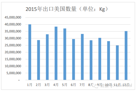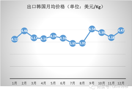 而伊朗、韩国、埃及三国年均进口价格则最低,分别为4.2美元/Kg、4.22美元/Kg、4.26美元/Kg,其中2015年12月份出口伊朗的平均价格甚至下探至2.98美元/Kg。