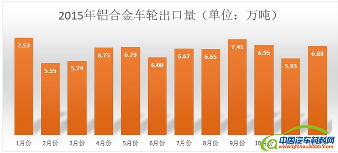 2015年中国大陆月出口铝合金车轮重量