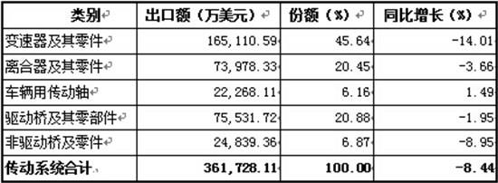 传动系零部件出口情况