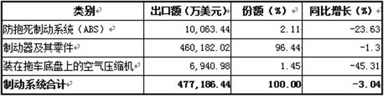 制动系零部件出口情况