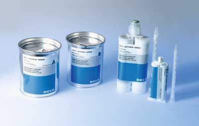 双固化产品具有广泛的粘接性能,粘接和封装有对应的粘度。由于其触变流动的特性,两种粘度都易于操作。固化后的使用温度范围为-65 °C到180 °C,对于更高的温度需求,德路不久前推出了高温粘合剂,最高可耐温度为250 °C。尽管其有双固化特性,环氧树脂仍具有很好的耐化学性。在例如传动装置润滑油、汽油或甲醇等腐蚀介质里放置500小时,它的力学性能也几乎没有受到影响。对可损伤大多数粘合剂性能的印刷油墨,该产品也显示出了高耐抗性。因此它尤其适合用于打印头部位的粘合,这需要极高的定位精度,例如将喷嘴板粘合在插入器上。