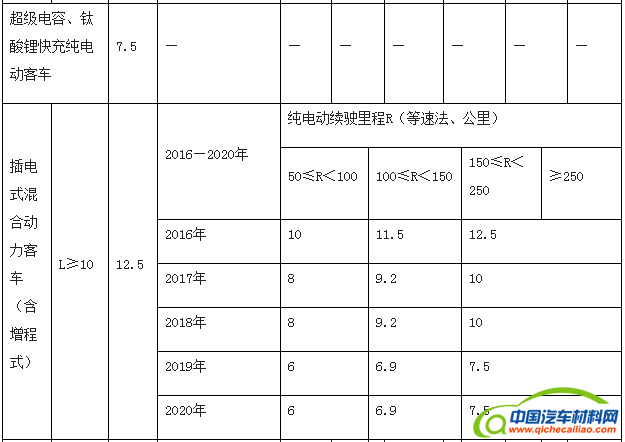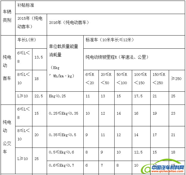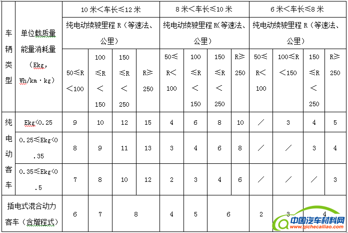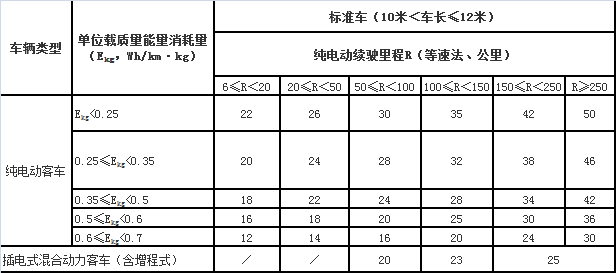 注:纯电动客车(纯电动公交车)补贴标准以2016年为基准,2017-2018年补助标准在2016年基础上下降20%,2019-2020年补助标准在2016年基础上下降40%,补贴长度以10—12米纯电动客车为标准车,其他长度纯电动客车补贴标准按照上表单位载质量能量消耗量和纯动车续驶里程划分,插电式混合动力客车(含增程式)补贴标准按照上表纯动车续驶里程划分,其中, 6米及以下客车按照标准车0.2倍给予补助;6米<车长≤8米客车按照标准车0.5倍给予补助;8米<车长≤10米客车按照标准车0.8倍给予补助;12米以上、双层客车按照标准车1.2倍给予补助。