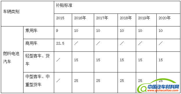 四、燃料电池车补贴标准(单位:万元/辆)