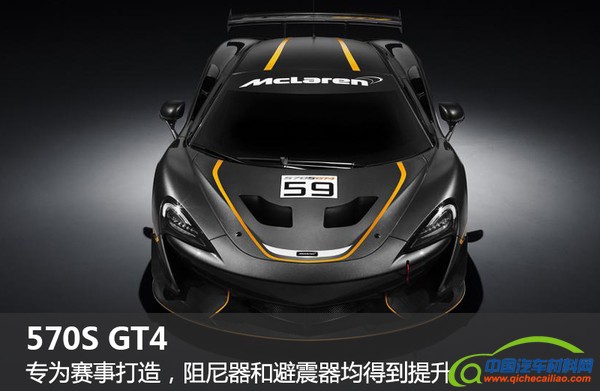 在迈凯伦2款新车中,570S GT4将参加本年度举办的英国GT锦标赛,共9场分站比赛,首轮则是英国GT赛事,并且于4月16-17日进行。其中,570S GT4是由迈凯伦赛车研发部门全力打造的车款,而570S GT4则专为各项赛事而打造的工厂赛车,新车的悬挂系统与避震器均经过针对性的升级,并配备有单螺母设计的镁合金轮毂,以及由国际汽联所认证通过的全车防滚架。