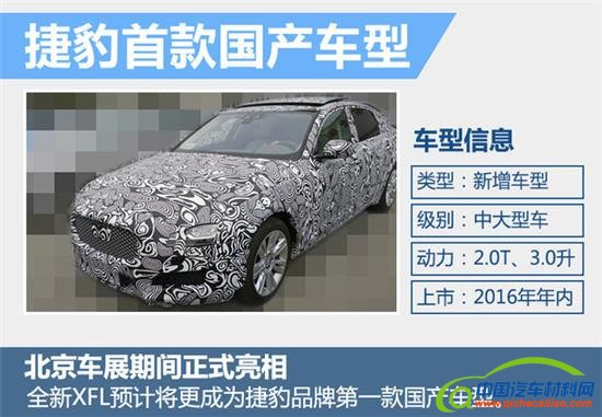 目前,捷豹品牌旗下产品包括XE、全新XF以及即将上市的F-PACE在内均采用iQ[AI]智能模块化全铝车身平台打造。捷豹路虎联合市场销售与服务机构常务副总裁胡俊透露:“捷豹路虎在华生产的全铝车身,将于下月正式投产并下线。”捷豹路虎去年在华注册了“XFL”商标,捷豹首款国产车型有望是长轴距版的全新XF,将命名为“XFL”。新车预计会在4月25日开幕的北京车展期间正式亮相,随后由捷豹路虎常熟工厂进行批量生产,于今年年内正式上市。