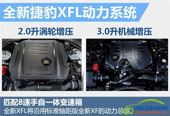 动力方面分,已经投放市场的全新XF提供了2种不同动力的车型,分别搭载Ingenium系列的2.0升4缸涡轮增压发动机和3.0升V6机械增压发动机。其中,2.0升涡轮增压发动机的最大功率为177千瓦,峰值扭矩达到340牛米;3.0升机械增压发动机的最大功率为250千瓦,峰值扭矩达到450牛米。国产全新XFL预计将保留这两种动力,与发动机匹配的传动系统将是8速手自一体变速箱。